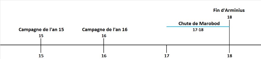 La chute de MarobodRetrouvez le résumé de cette partie au sein du synopsis : TibèreQuand l'invasion romaine eut été soudainement interrompue, les patriotes se préparèrent à attaquer Marobod (an 17) et surtout peut-être la royauté qu'il avait créée sur le modèle du gouvernement romain1. Mais eux-mêmes étaient divisés; les deux princes chérusques, si proches parents, qui avaient commandé les patriotes dans les derniers combats, sinon victorieusement, du moins avec bravoure et gloire, et qui avaient jusqu'alors toujours combattu côte à côte, se séparèrent: Inguiomerus, l'oncle, ne voulut pas obéir plus longtemps à son neveu, et passa dès le début de la guerre du côté de Marobod. Une bataille décisive fut livrée par les Germains contre les Germains qui appartenaient aux mêmes tribus: de part et d'autre luttaient des Suèves et des Chérusques. Le combat fut longtemps incertain: les deux armées avaient appris également la tactique romaine; la passion et la colère étaient aussi violentes des deux côtés. Arminius ne remporta pas une véritable victoire; mais son adversaire lui abandonna le champ de bataille. Marobod, paraissant ainsi avoir le dessous, perdit tous ses alliés et fut réduit à ses seules forces. Lorsqu'il demanda l'aide des romains contre ses compatriotes plus puissants que lui, Tibère lui rappela quelle avait été sa conduite après la défaite de Varus, et lui répondit que les romains voulaient rester neutres à leur tour. Sa fin approchait. L'année suivante (18), il fut détrôné par un prince des Gothones, Catualda, qu'il avait offensé personnellement et qui s'était séparé de lui avec les autres Suèves de Bohême. Abandonné des siens, il se réfugia chez les romains qui le laissèrent en liberté sur sa demande, et il mourut longtemps après à Ravenne, pensionnaire de l'empire. 1. Tacite (Ann, II, 45) avant que cette guerre ait été essentiellement une lutte des républicains contre les monarchistes; mais il transporte des idées gréco-romaines dans le monde germanique tout différent. Si la guerre a eu une tendance politique, ce n'est pas le nomen regis de Tacite qui l'a provoquée, mais plutôt le certum imperium visque regia dont parle Velleria (II, 108). |